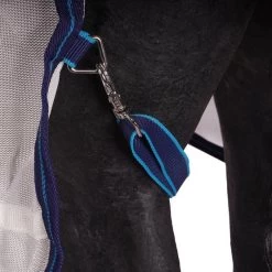 Der Weatherbeeta Comfitec Airflow II Combo-Hals besteht aus weichem, strapazierfähigem Polyesternetz und verfügt über eine neue Ultra-Bauchklappe und eine vollständig umwickelte Heckklappe für erstklassigen Schutz. Darüber hinaus verfügt die Decke über einen elastischen Einsatz am Widerrist für zusätzlichen Komfort beim Weiden. Der Ezi-Clip-Frontverschluss und der traditionelle Seitenzwickel für natürliche Bewegung vervollständigen die Decke. Die Schultern sind weich mit gepolstertem elastischem Nylonmaterial gepolstert. Die Mähne und die Heckklappe sowie das Gummiband sind ebenfalls mit Nylonmaterial ausgekleidet. Die Decke hat verstellbare und abnehmbare Beinriemen. Darüber hinaus bietet die Decke 70% UV-Schutz.